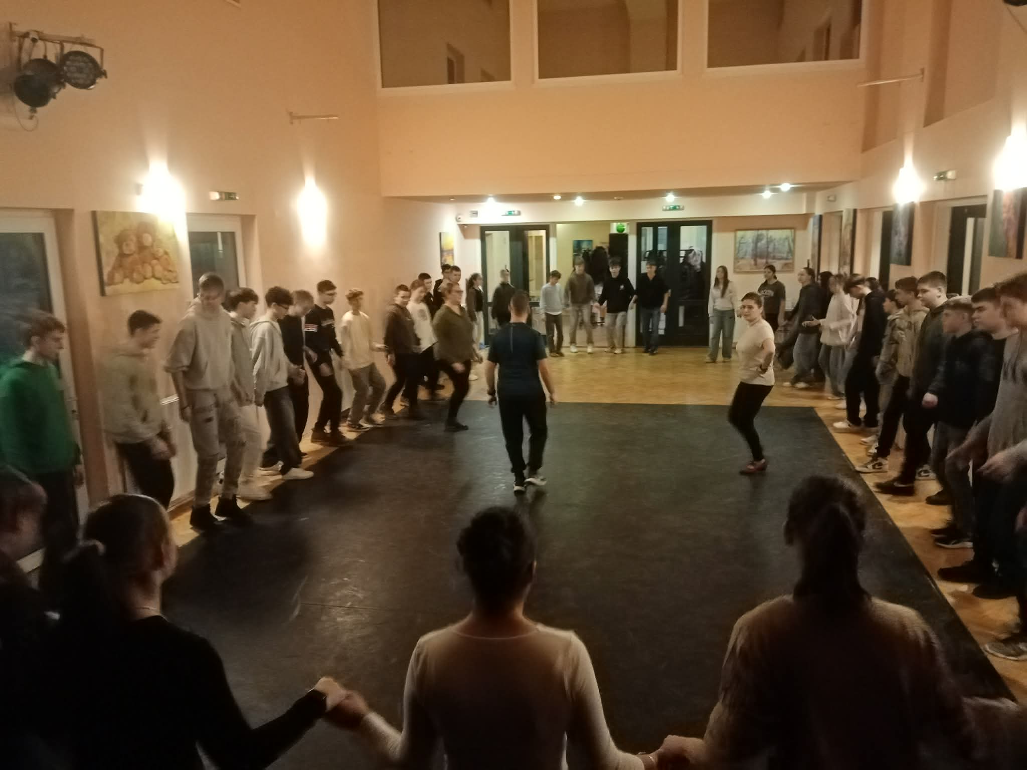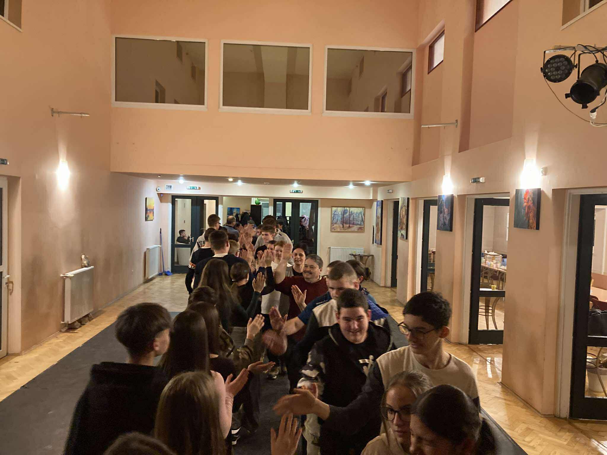 Uzsonnára egy kis péksütemény és a farsangtól elmaradhatatlan fánk érkezett, az energiafeltöltés után pedig indult a tánctanulás: zsidó és moldvai körtánc, felcsíki héjsza mozgatta meg a fiatalokat, akik – többé vagy kevésbé – lelkesen kapcsolódtak be a mulatságba.