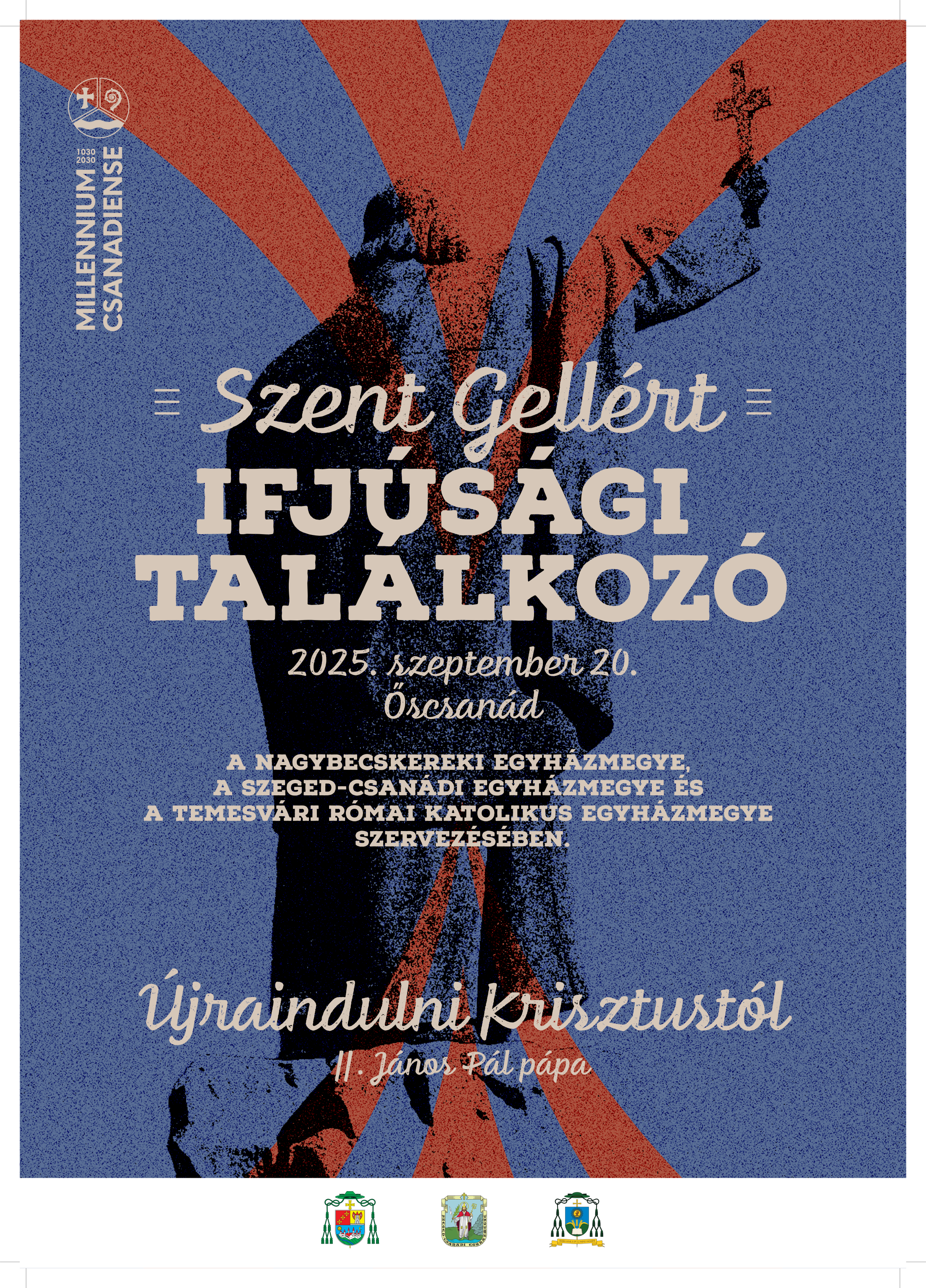 A méltó ünnepléshez, ez alkalommal egyházmegyeközi találkozóra hívjuk a Temesvári, a Szeged-Csanádi és a Nagybecskereki egyházmegye 13 és 18 éves fiataljait, melyre 2025. szeptember 20-án kerül sor, egy különleges helyszínen Őscsanádon (Cenad – RO).